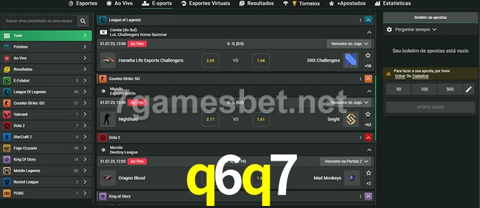O q6q7 oferece uma grande seleção de opções de apostas em e-sports com probabilidades competitivas